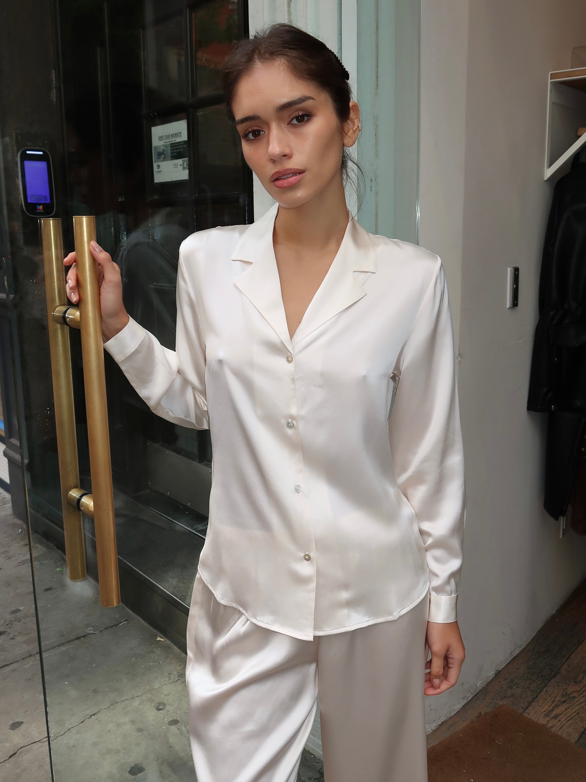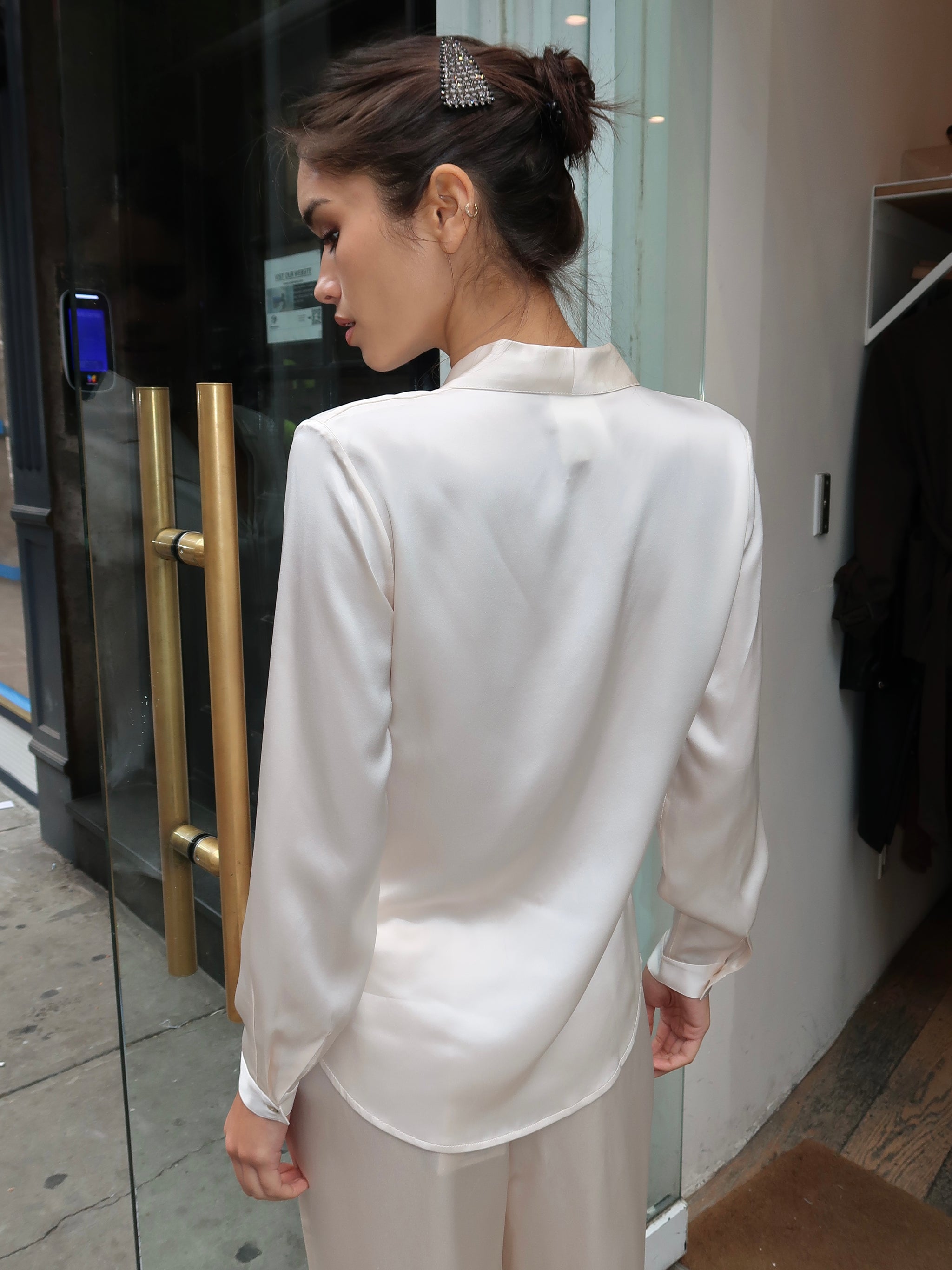 Irene Blouse in Ivory Satin