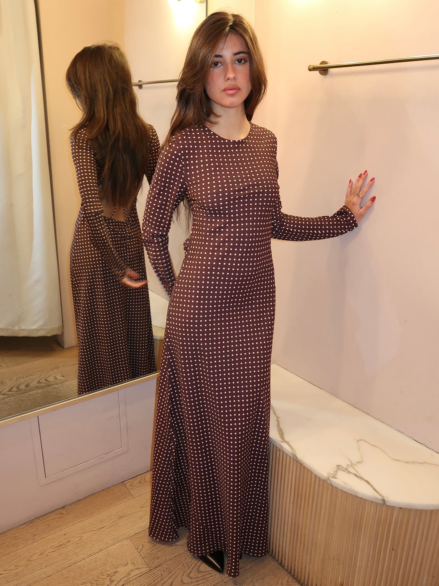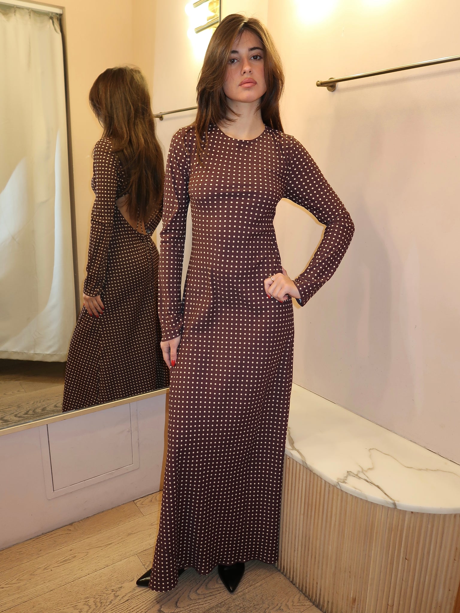 Mesa Maxi Dress in Polkadot Chocolate Plum