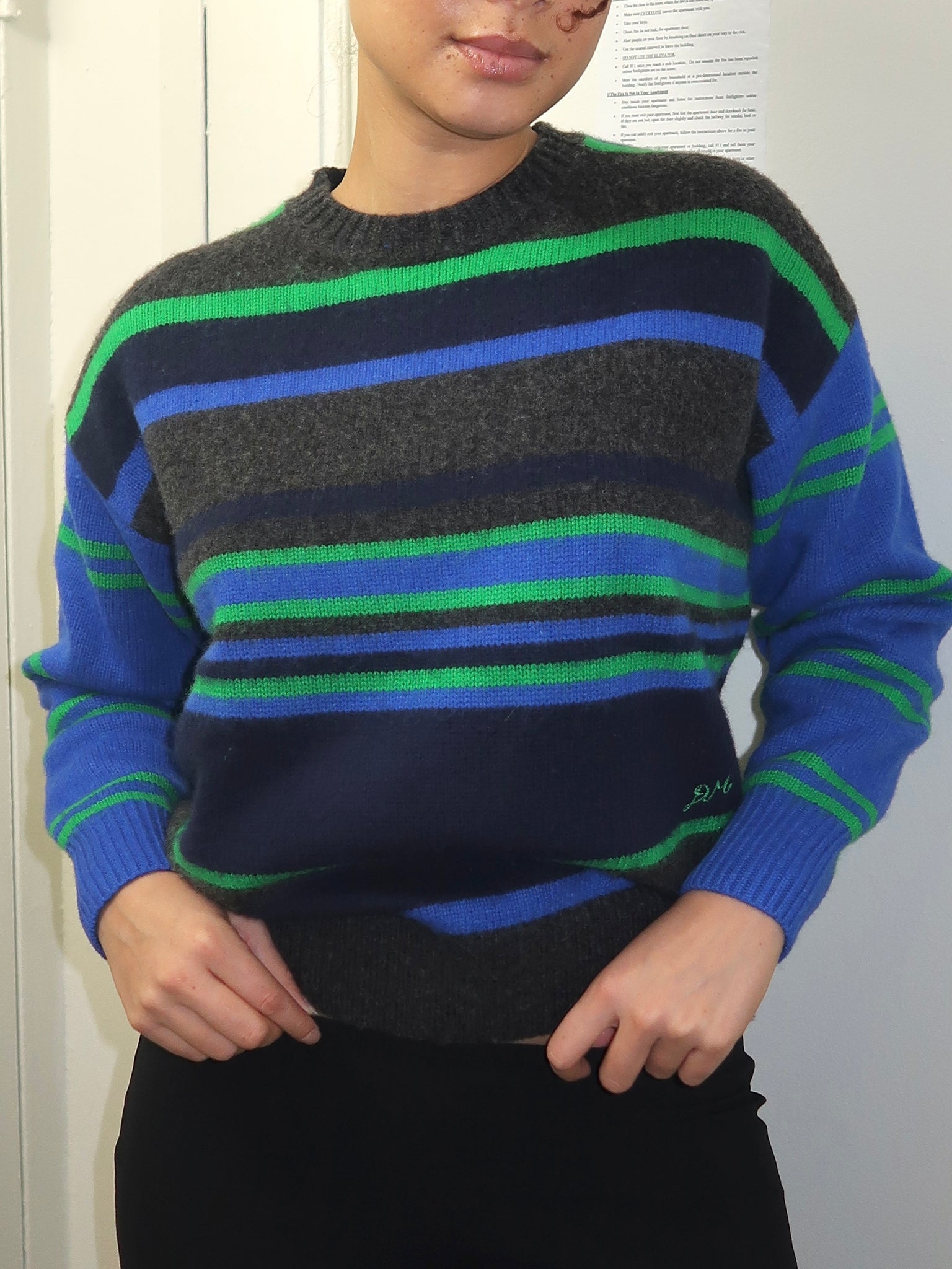 Rene Crew Jumper in Green/Blue Stripe Multi