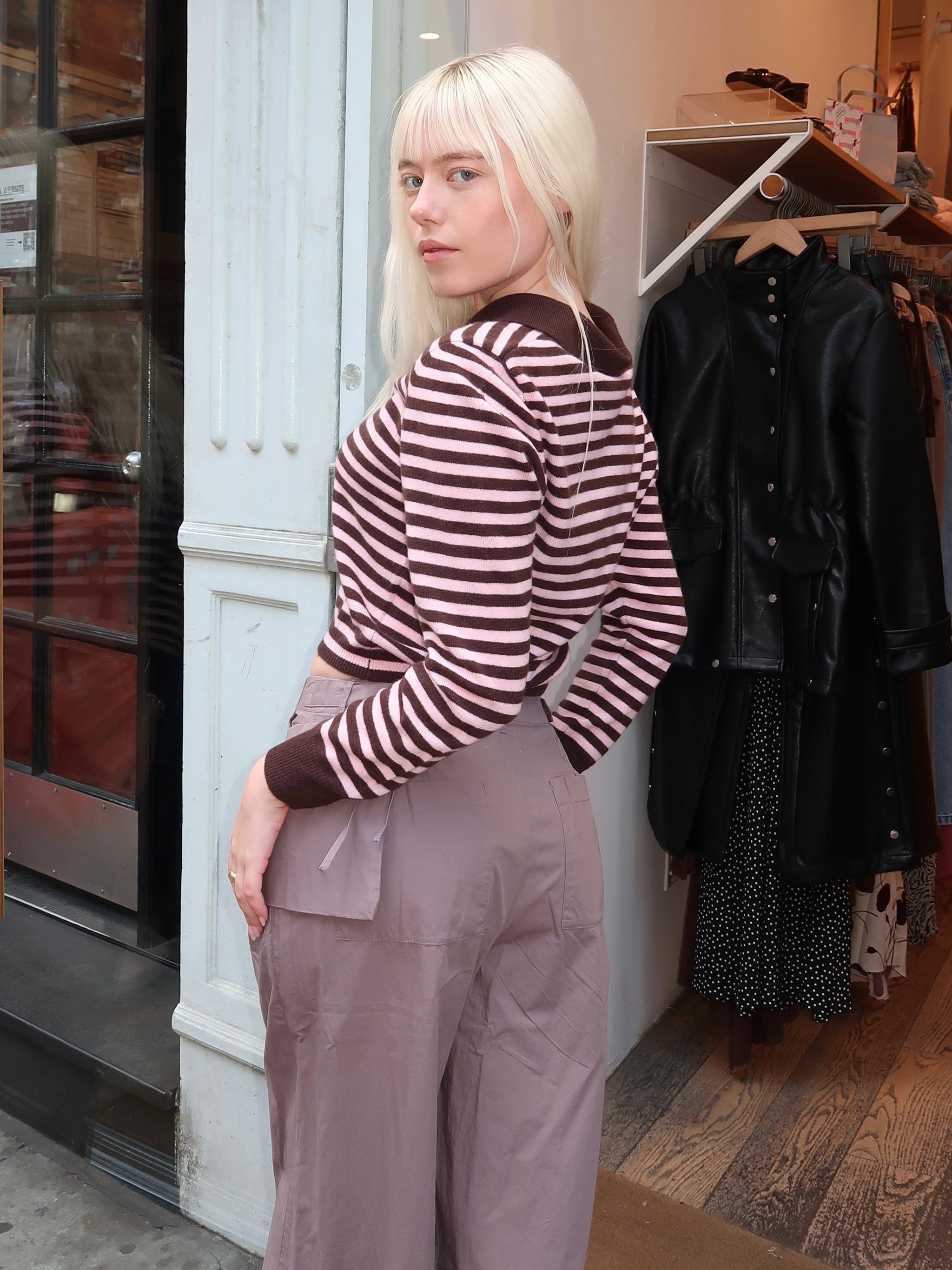 Anselma Cardigan in Pink & Dark Brown Cashmere