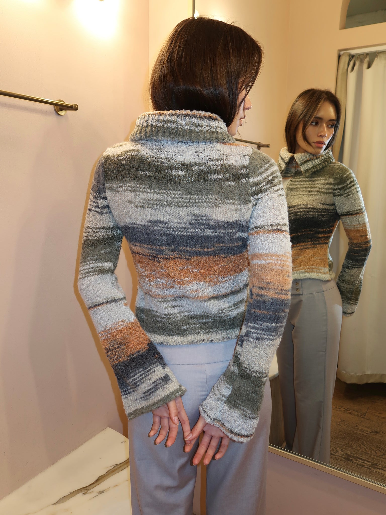 Danielle Knit Zip Up in Multi Orange