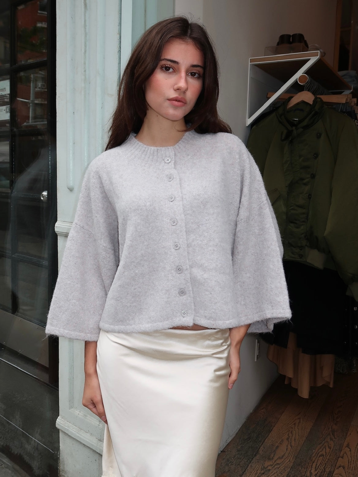 Martha Sweater Cardi in Light Grey