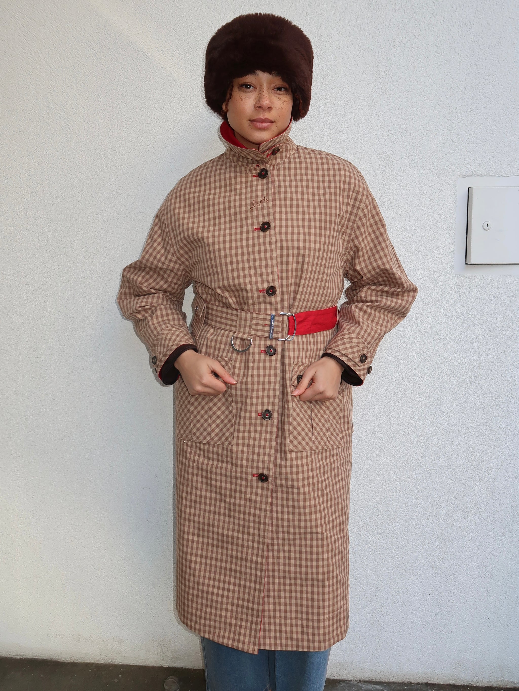 Anja Reversible Honey Trench in Tan/Red
