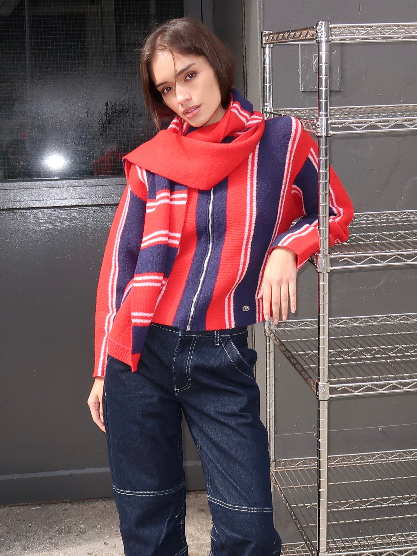 Bibi Skinny Scarf in Red Navy Stripe Multi