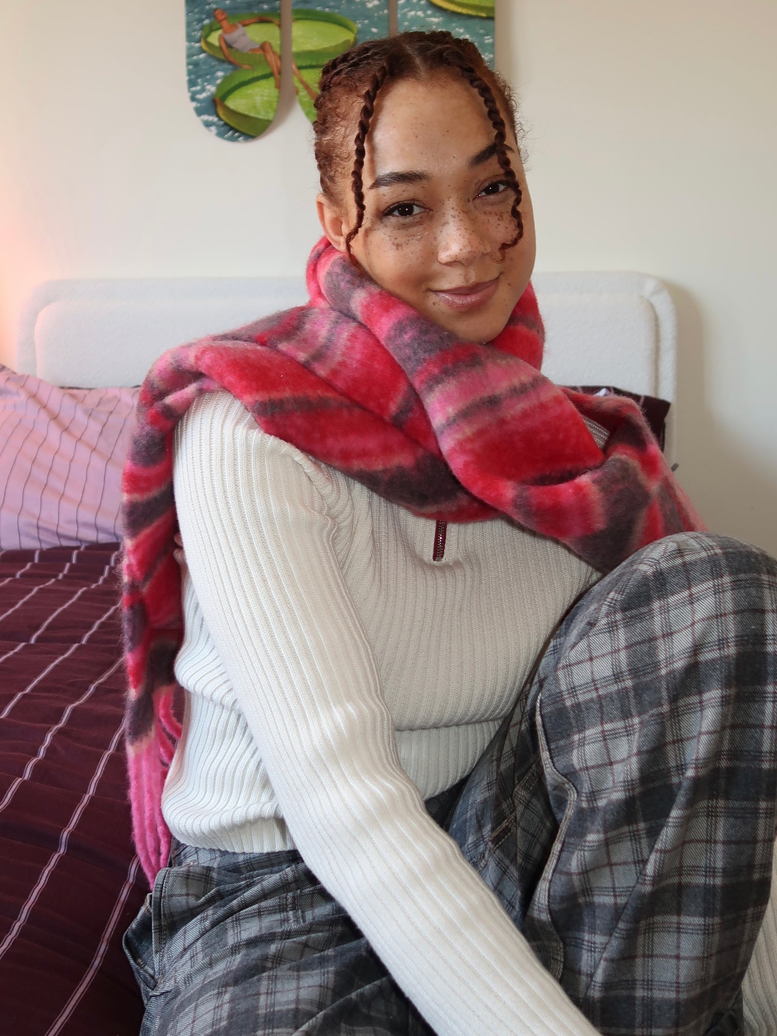DM Fluffy Scarf in Pink Pop Stripe Pink