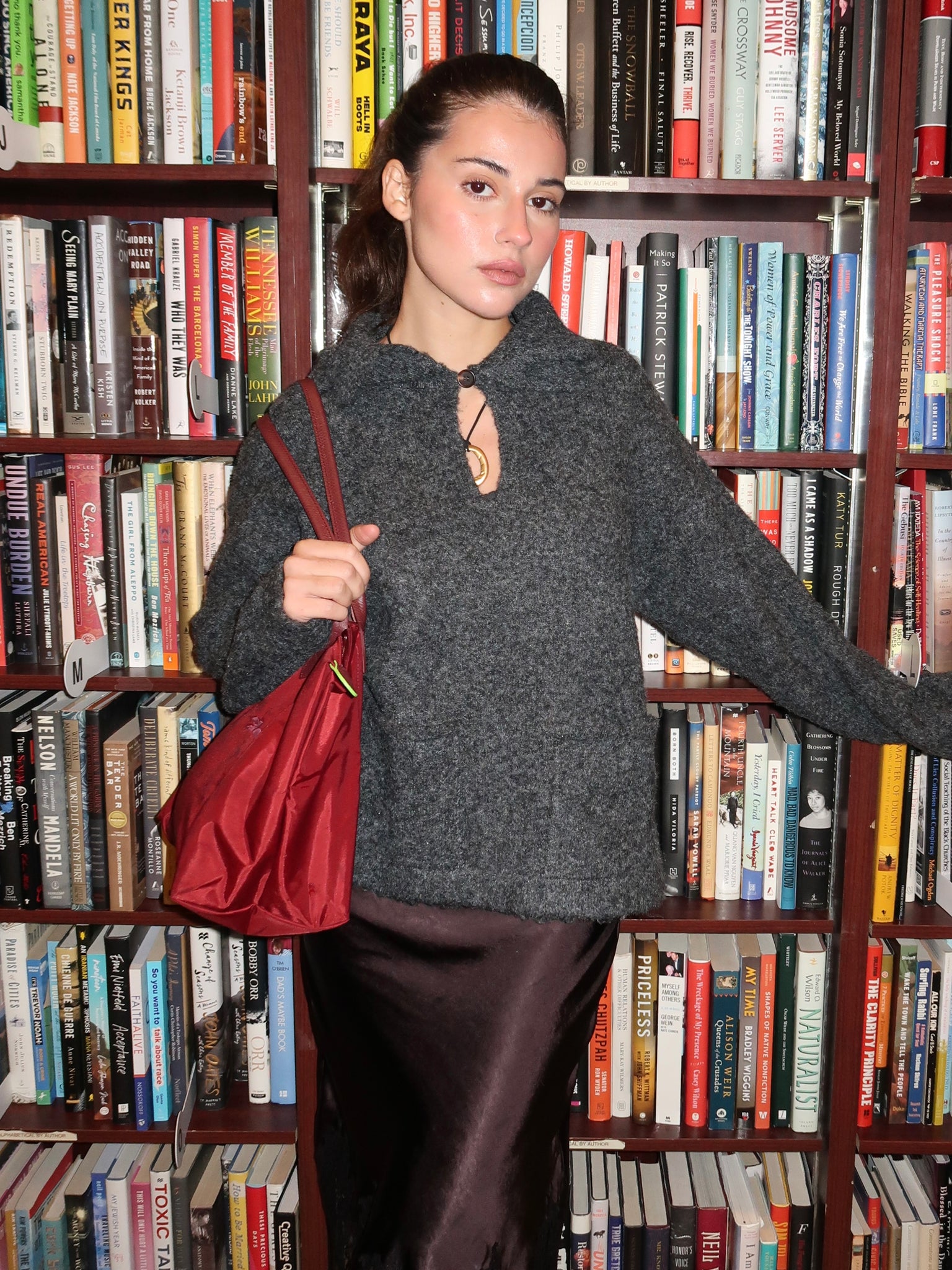 Leigh Keyhole Sweater in Charcoal