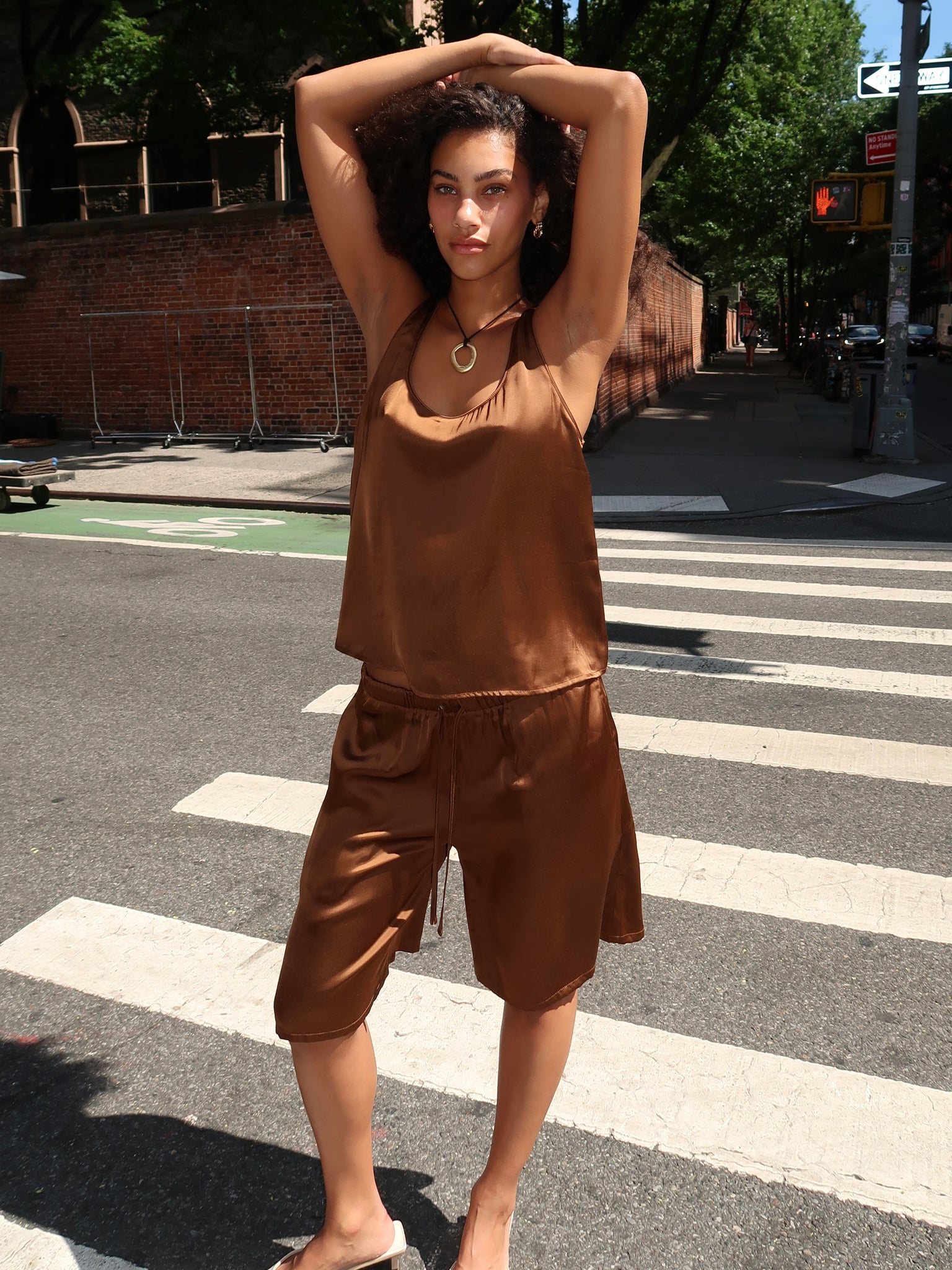 Serena Silky Satin Shorts in Brown